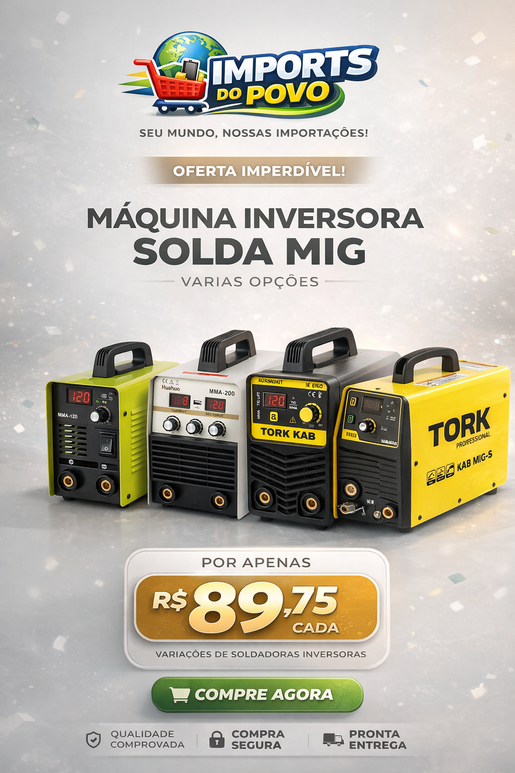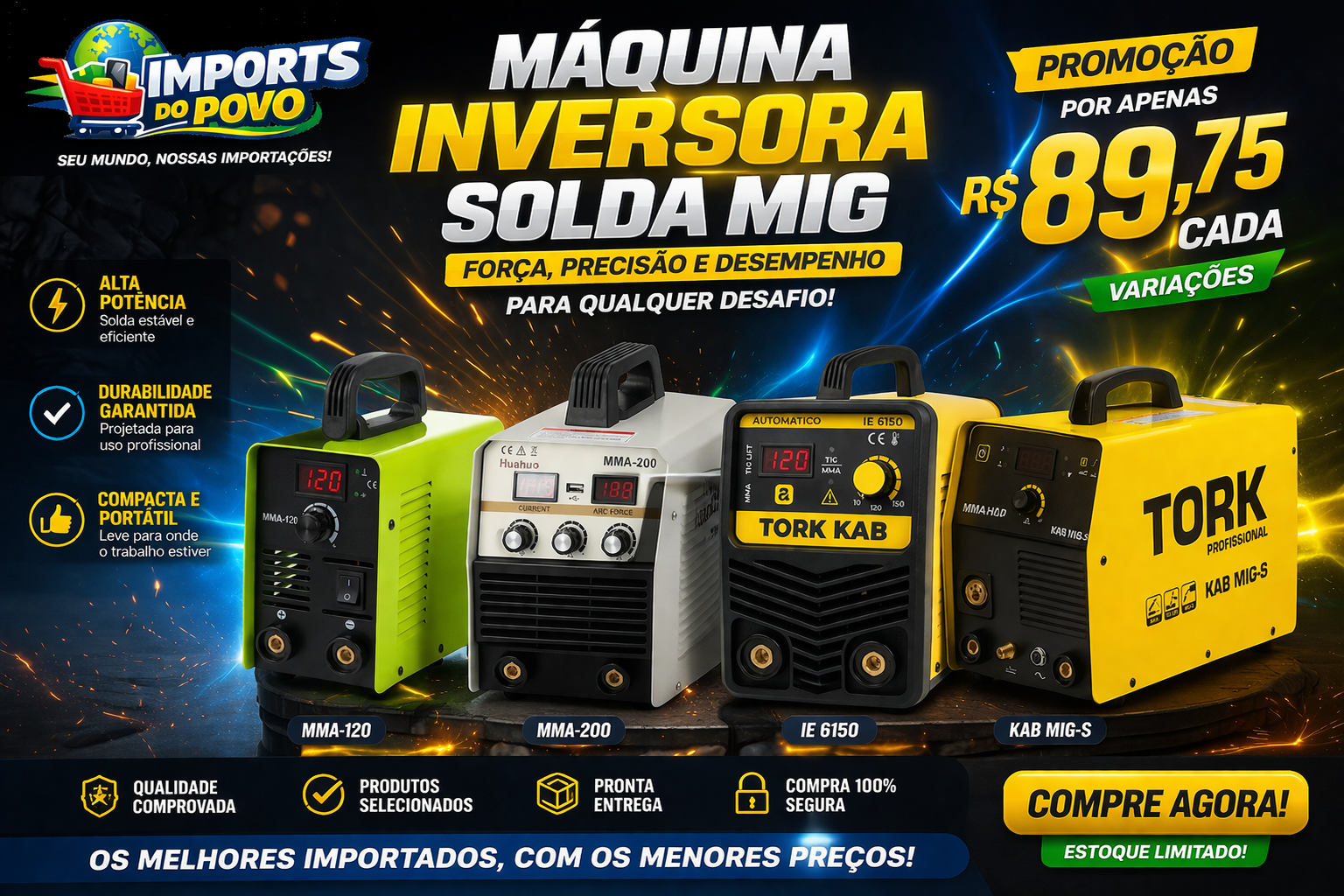 Máquina de Solda Inversora — MMA, MIG, TIG, Multiprocesso | Kit Completo Profissional